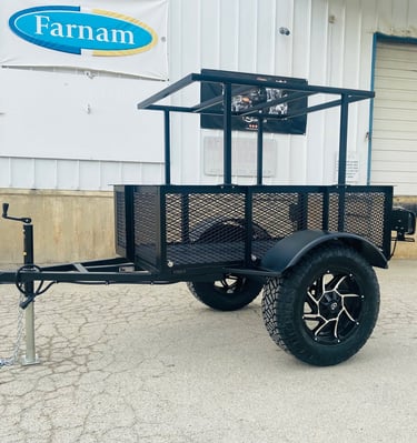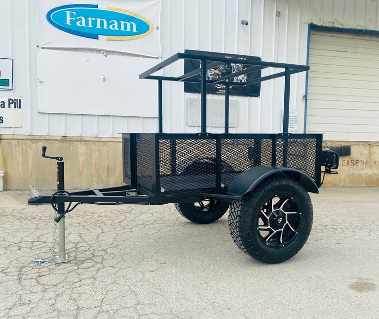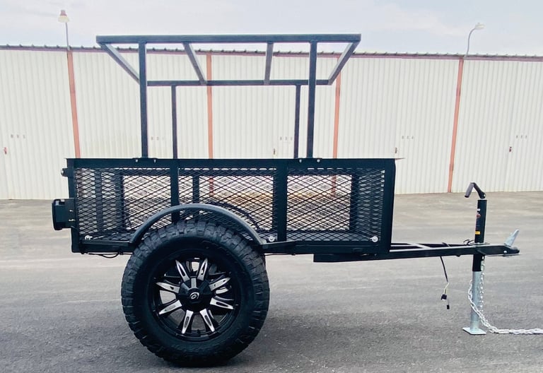 several styles available in three different lengths a 4’x4’ a 4x6’ and the larger 4’x8’ all chassis are constructed using 2”x2” square steel tubing 1/8” wall for superior strength and durability. Capacity 4x6 Weight 600lbs. Cargo capacity 1000lbs. Rack capacity 500lbs Contact us for options and pricing
