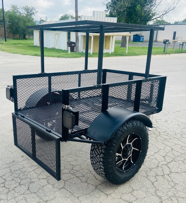 several styles available in three different lengths a 4’x4’ a 4x6’ and the larger 4’x8’ all chassis are constructed using 2”x2” square steel tubing 1/8” wall for superior strength and durability. Capacity 4x6 Weight 600lbs. Cargo capacity 1000lbs. Rack capacity 500lbs Contact us for options and pricing